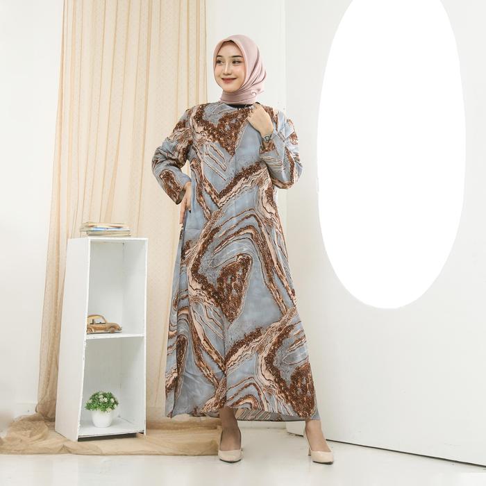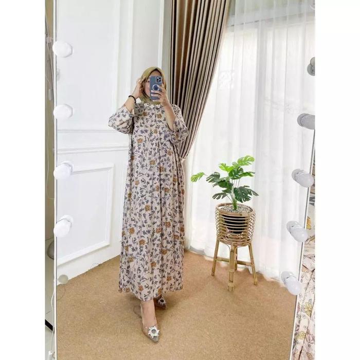 BAJU DASTER GAMIS RAYON WARNA TERANG LENGAN PANJANG SEMATA KAKI 3/4 MOTIF PRINTING ORINA BERLINES