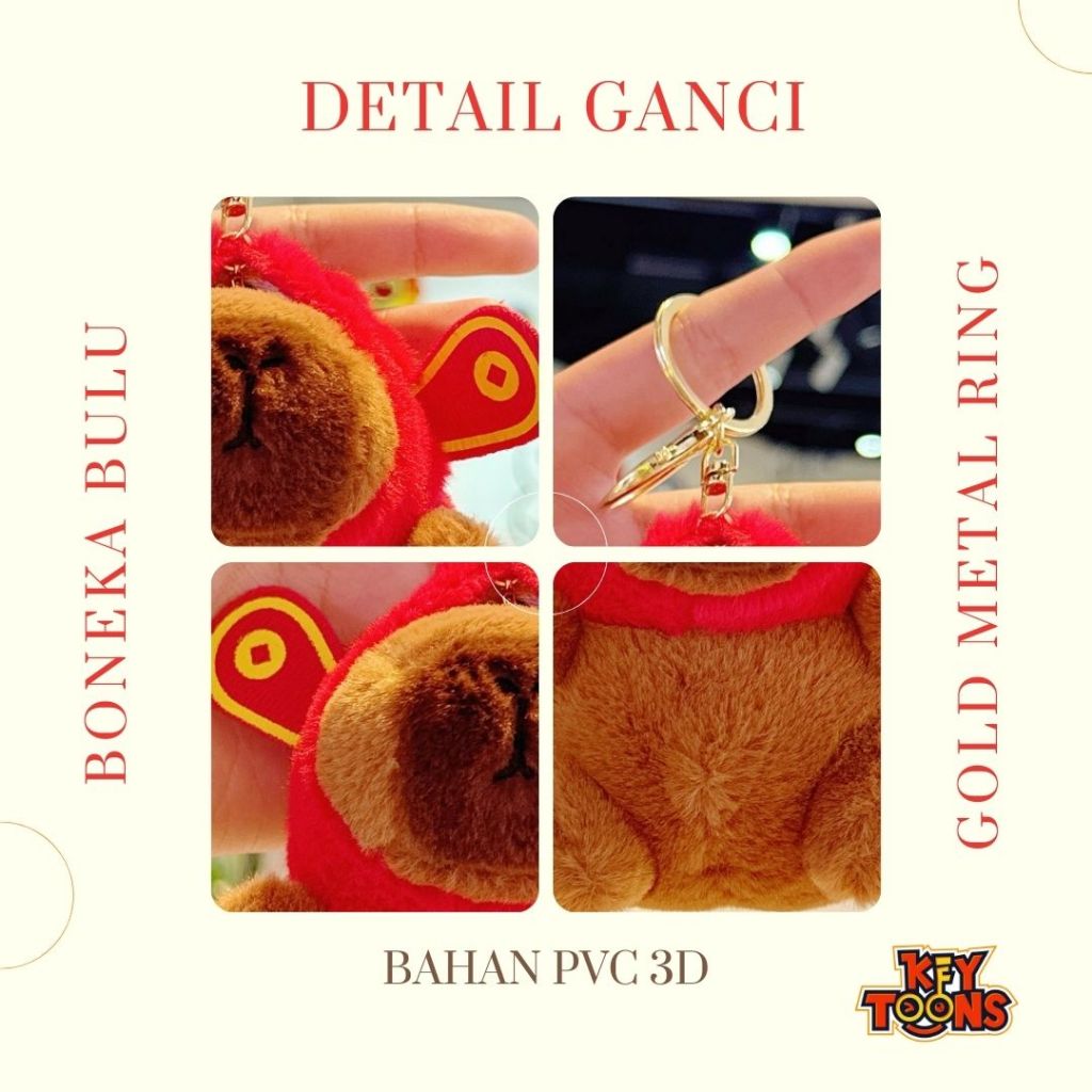Gantungan Kunci Capybara Boneka Hewan Bulu 3D Premium Kain Gold Ring Jennie Blackpink Turtle