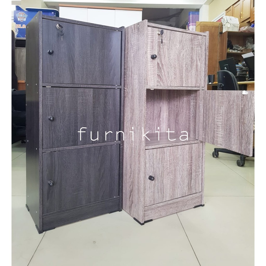 Rak Serbaguna 3 Pintu Kunci Rak Buku Lemari Kayu