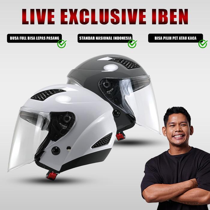 Helm Motor Iben Exlusive R-SIX Kirana Helm Half Face Solid Premium Pria Wanita Dewasa SNI Hijab