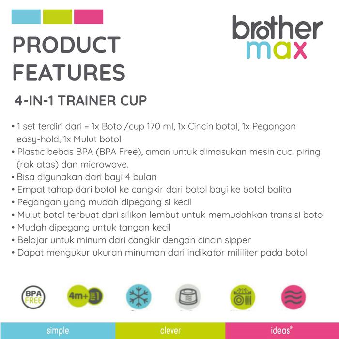 Alat Makan Bayi Brother Max 4in1 Trainer Cup Botol Minum MPASI Anak Multifungsi