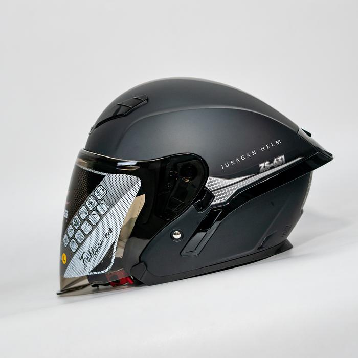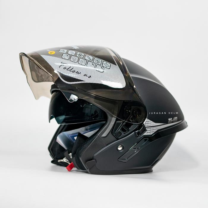 Helm Motor ZEUS ZS631 Z631 BS2 MATT BLACK/SIL DOUBLE VISOR