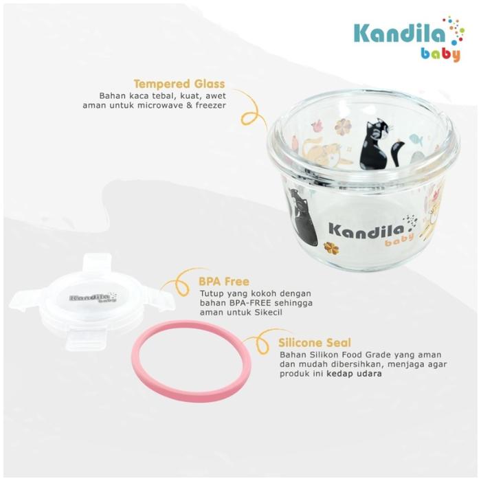 Alat Makan Bayi Kandila Baby Printed Glass Food Container 160ml Isi 3pcs KDL027-3 & KDL027-5 Tempat