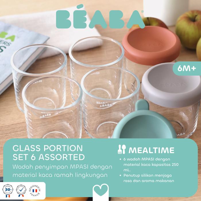 Alat Makan Bayi Beaba Set of 6 Glass Portion Jar 250 ml - Set Toples Kaca Tahan Panas