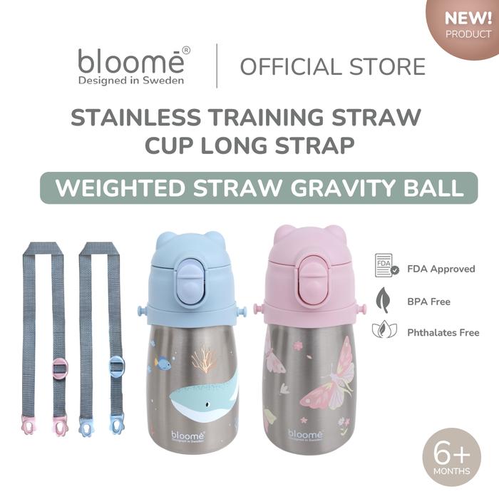 Alat Makan Bayi BLOOME - Stainless Training Straw Cup With Strap Botol Minum Anak 300ml with Premium