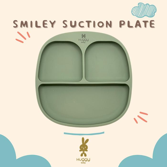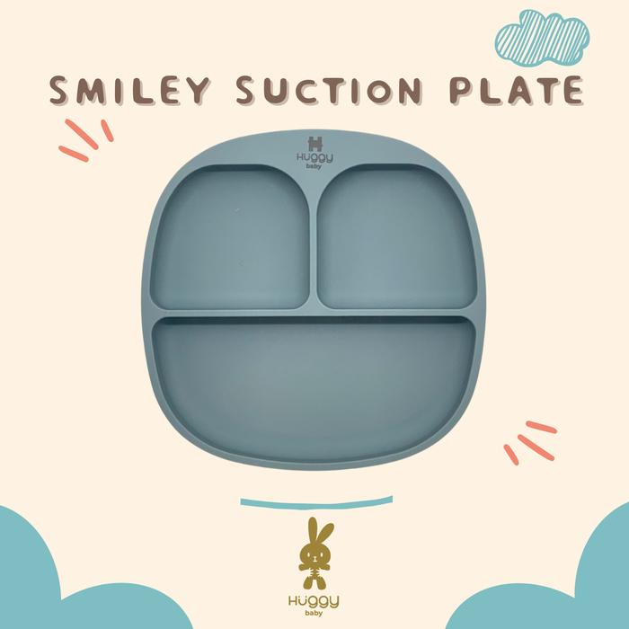 Alat Makan Bayi Huggy Baby AM003 Smiley Silicone Suction Plate Piring Silikon Anak Bayi