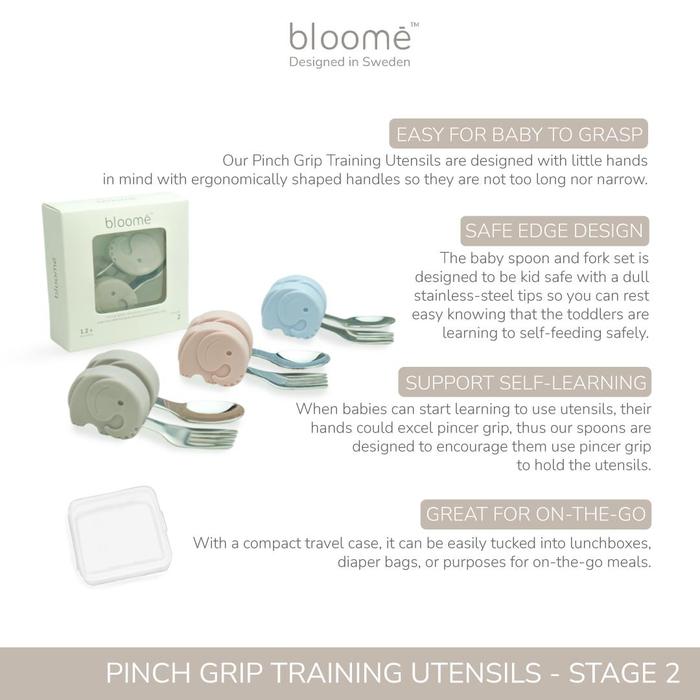 Alat Makan Bayi BLOOME Baby Pinch Grip Training Utensils - Stage 2 2 Piece Cutlery Set Free Case