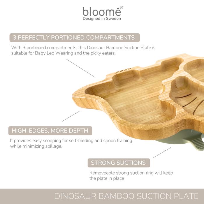 Alat Makan Bayi Dinosaur Bamboo Suction Plate For Baby Toddler And Kids Piring Makan Dinosaurus