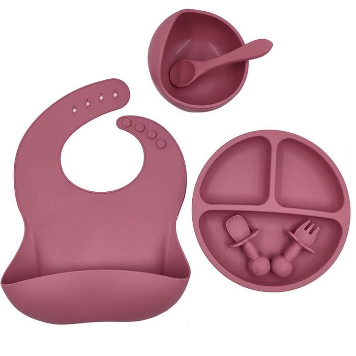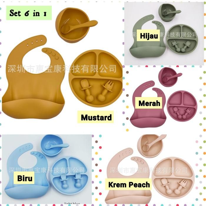 Alat Makan Bayi Set Alat Makan Bayi Silikon Mangkok Suction Bib Piring Sendok Bayi