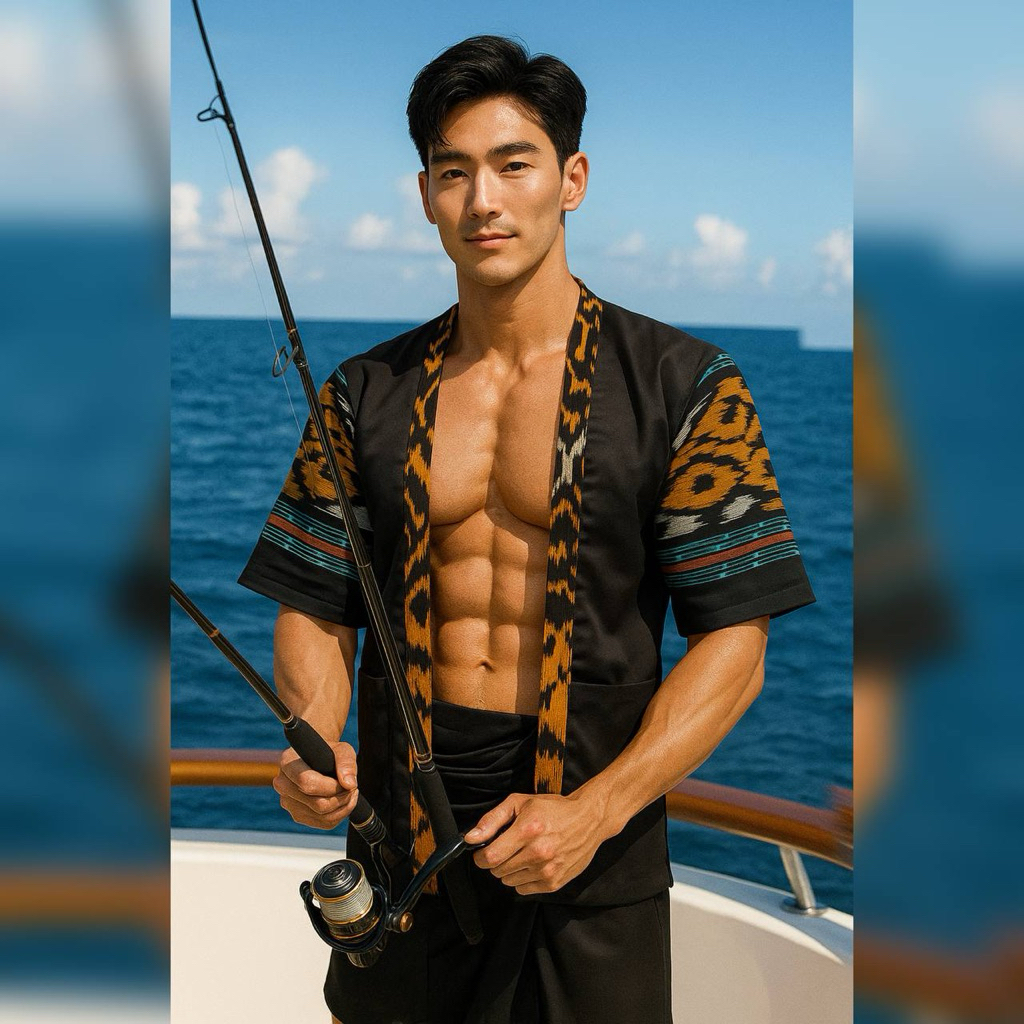 Keishan.id - Outer Batik Tenun Pria Kimono Etnik Uni Cardigan Bolero Songket Asli Toraja Sumba Bali