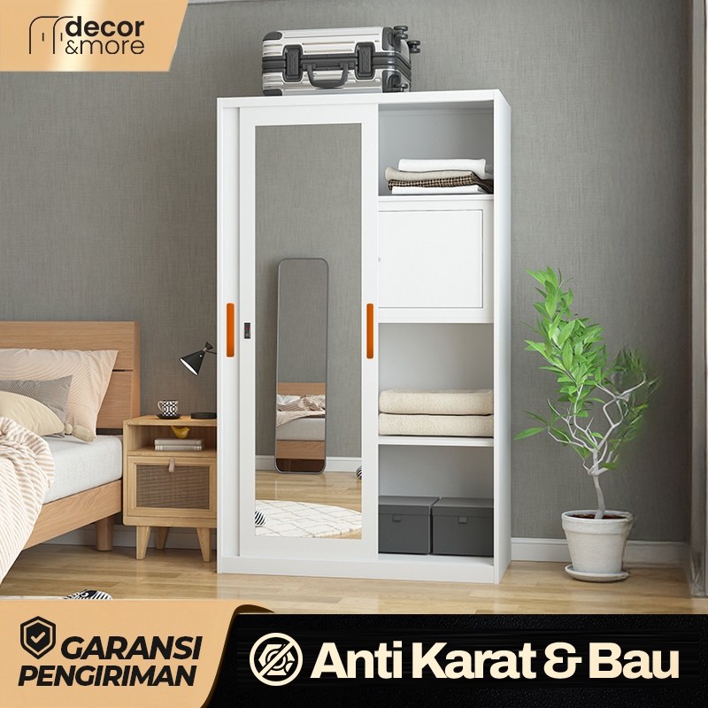 LEMARI BESI SLIDING 2 PINTU LEMARI BESI PAKAIAN LEMARI BAJU MINIMALIS FULL MOTIF & FULL PLAT BESI