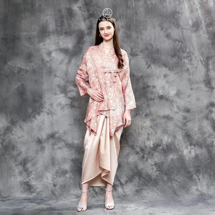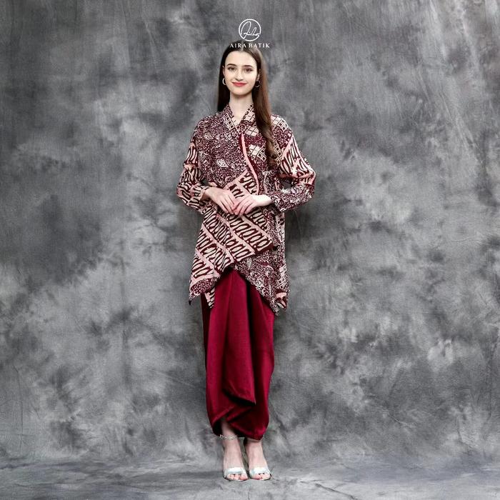 AIRA BATIK_ KIMONO MOTIF NON LACE I KIMONO MOTIF NON RENDA I KIMONO BATIK DRESS WANITA ATASAN VISCOSE MAROON ATASAN SAJA
