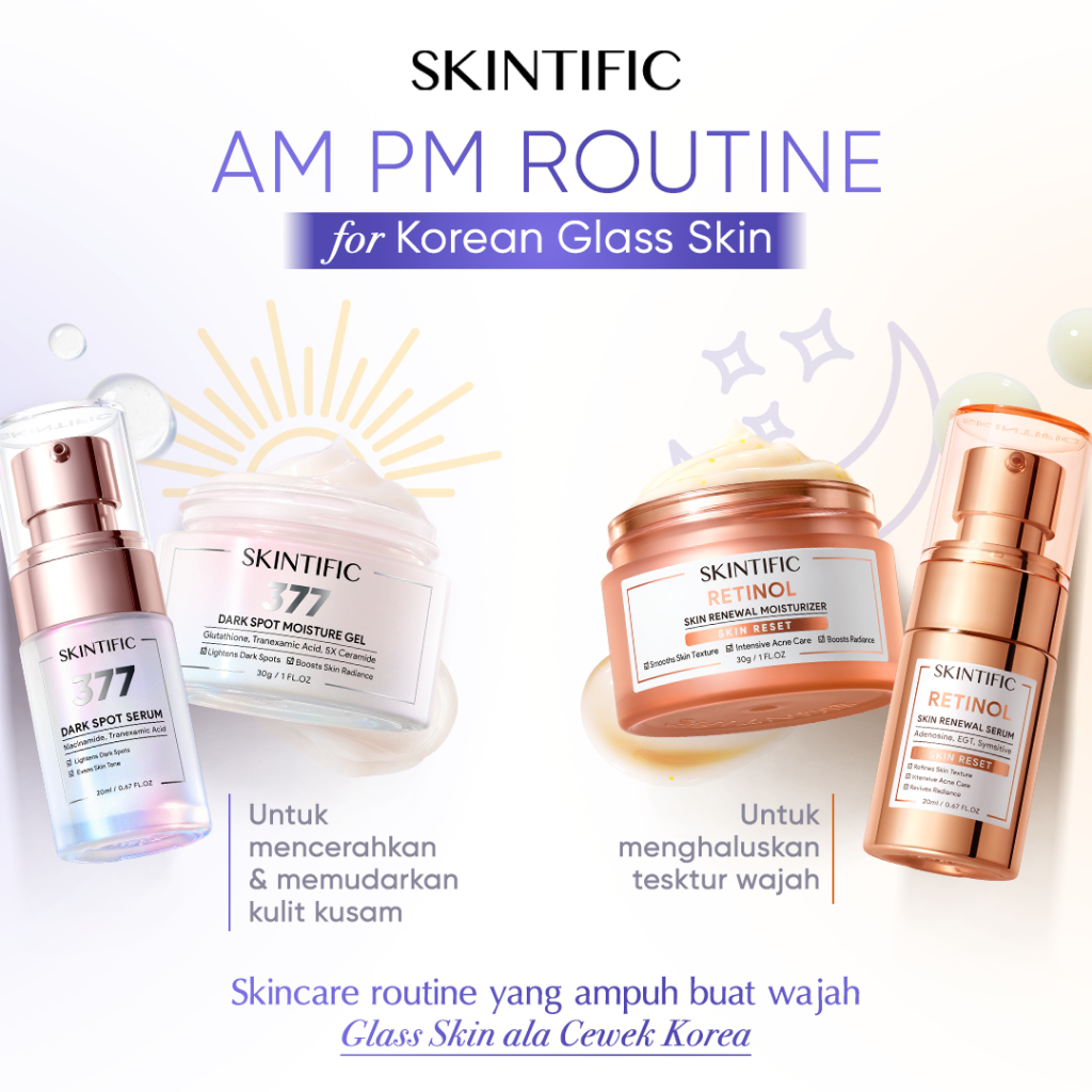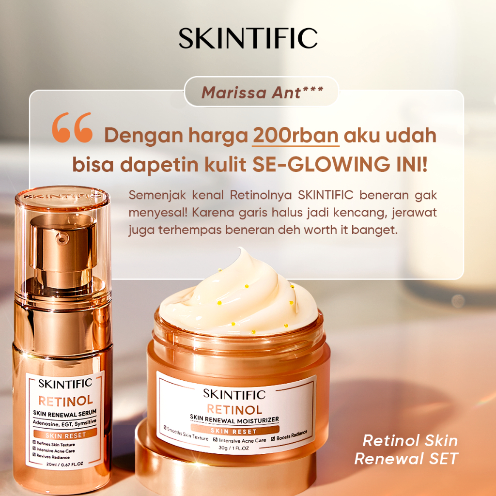 [SKINTIFIC CERTIFIED] 4pcs Paket Skincare Set - Retinol Skin Renewal Serum 20ml + Retinol Skin Renewal Moisturizer 30g + Symwhite