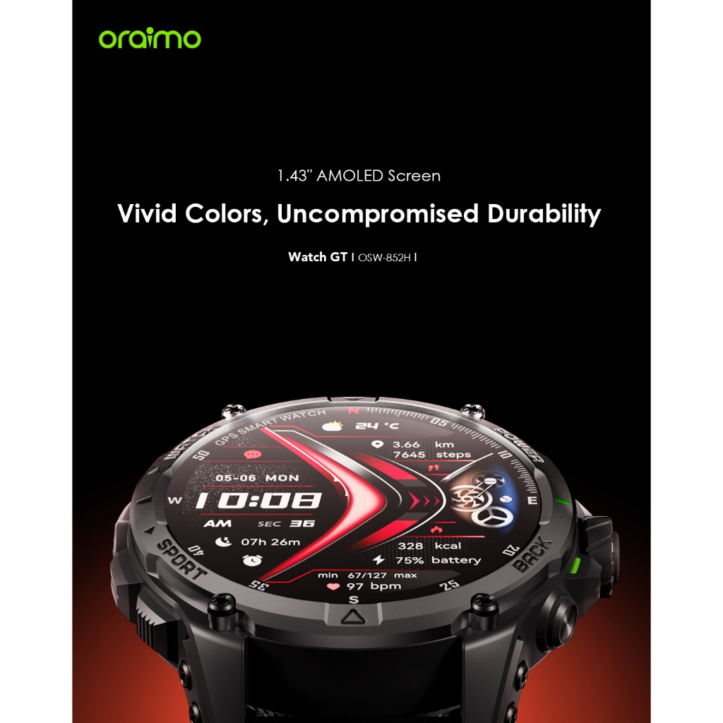 oraimo Smart Watch GT OSW-852H Jam Tangan Pintar Smartwatch 6 Star GPS Tracking 1.43" AMOLED Screen AI Generated Watch F