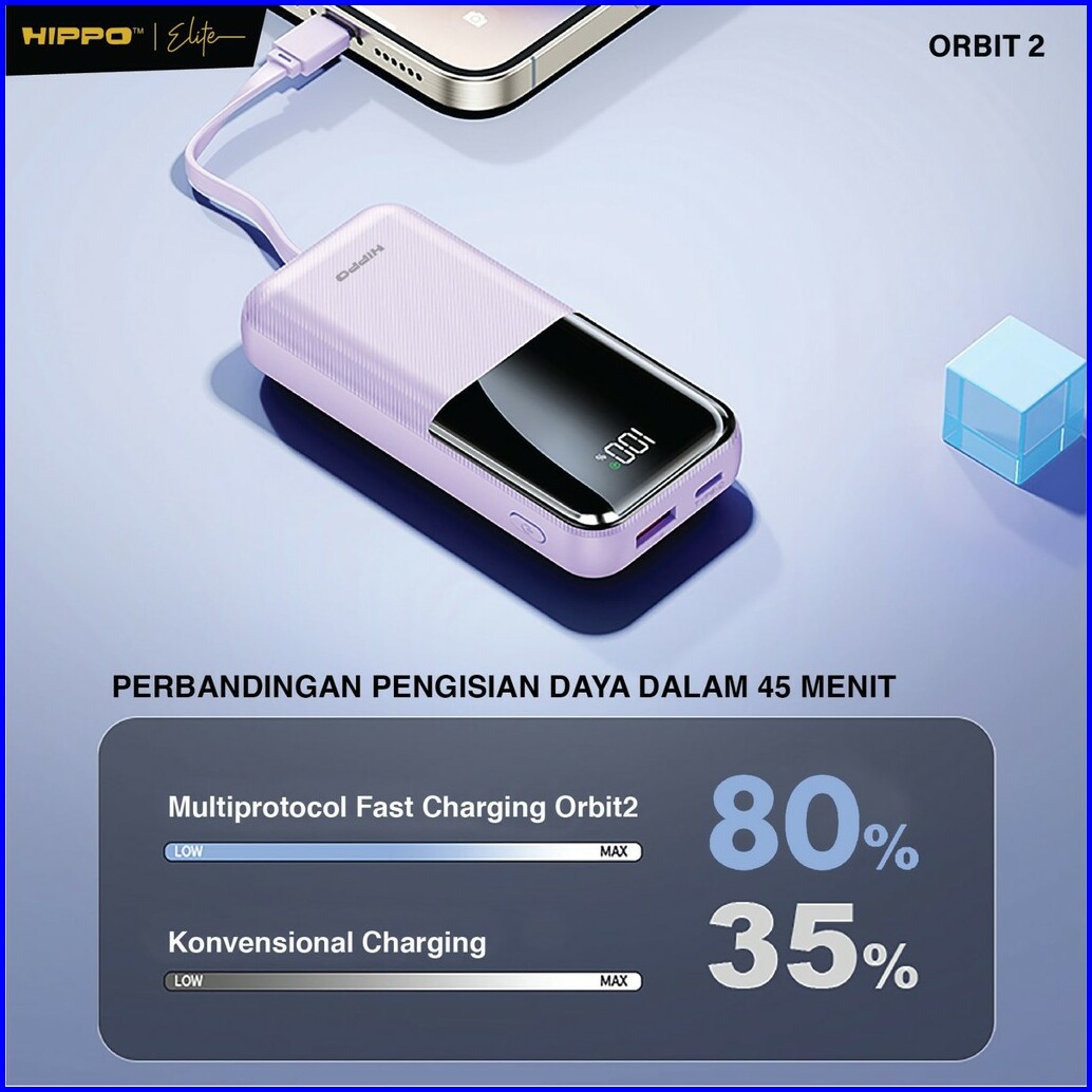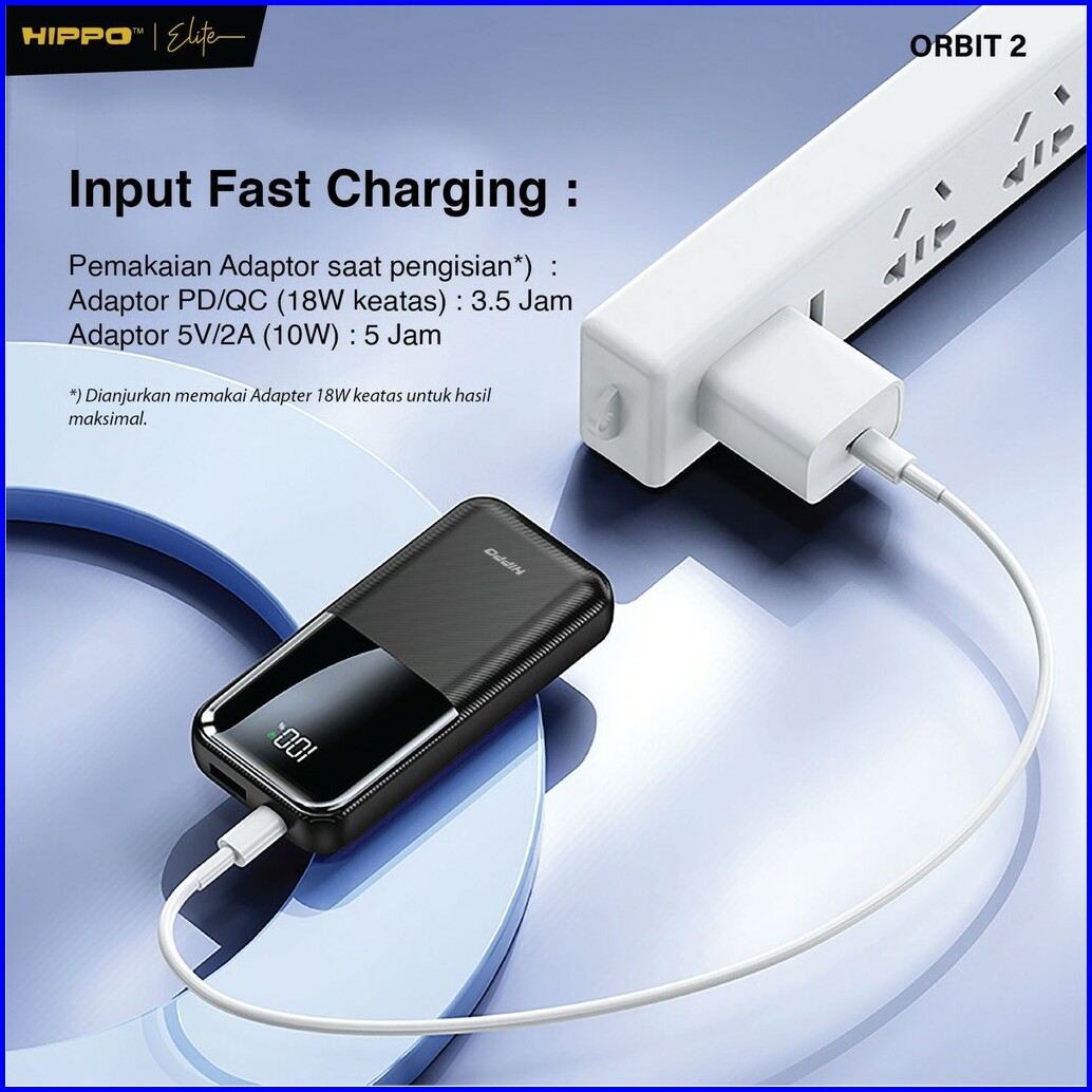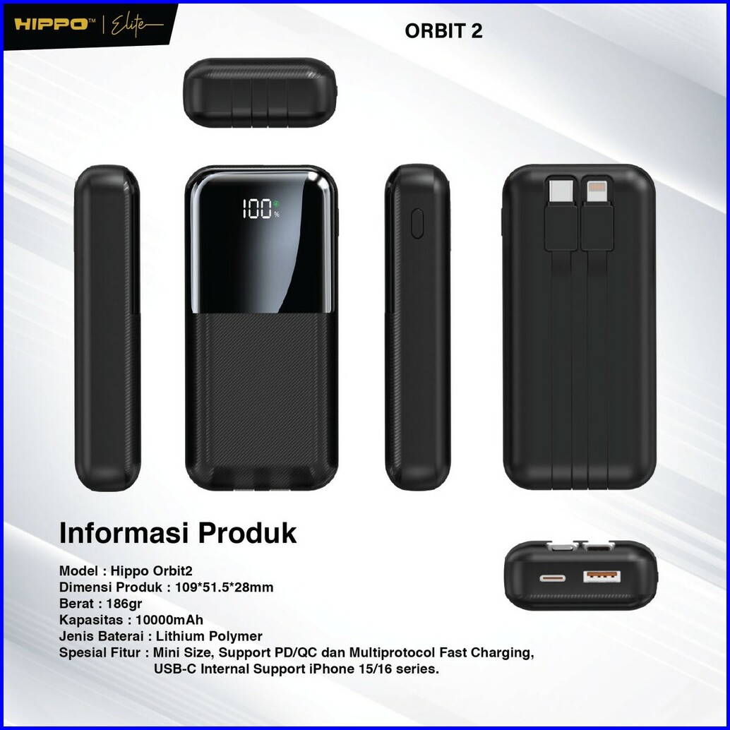 Hippo Powerbank Orbit2 10.000 Mah Pd 22.5w Type C Lightning Fast Charging Power Delivery Mini Size With Led Indicator Di