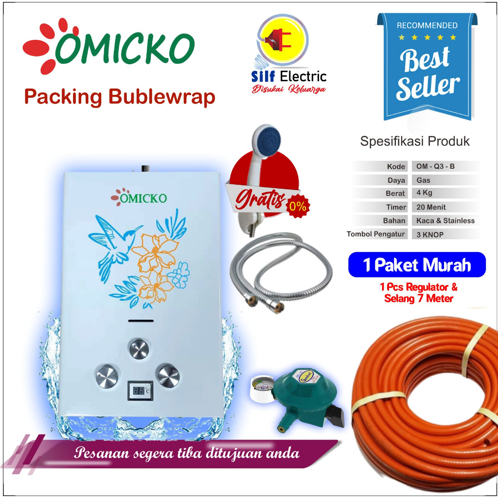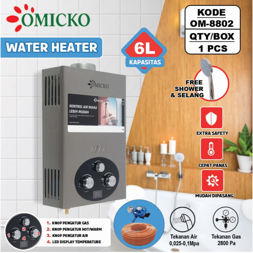 Pemanas Air Kamar Mandi Water Heater OMICKO Listrik/Gas Kecil Low Watt Portable Murah Modena Niko Midea Rinnai Ariston