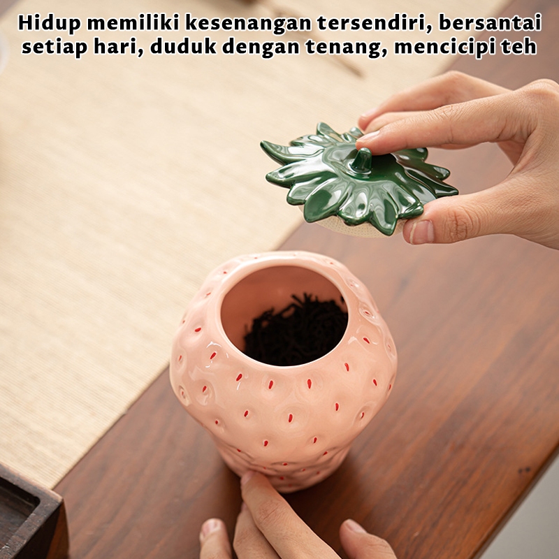 Toples Keramik Strawberry / Toples Penyimpanan / Toples Permen Lucu