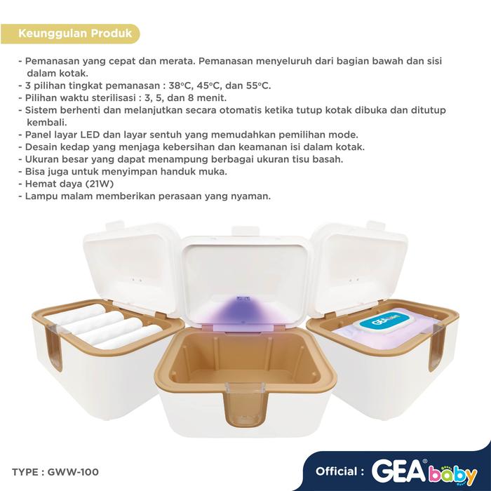 Sterilizer Dot GEA BABY Wet Warmer & UV Sterilizer GWW-100 Penghangat Tissue Basah Mini Sterilizer