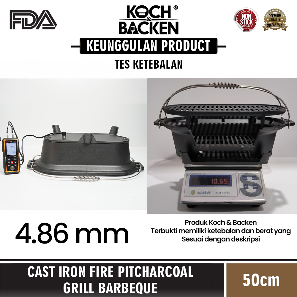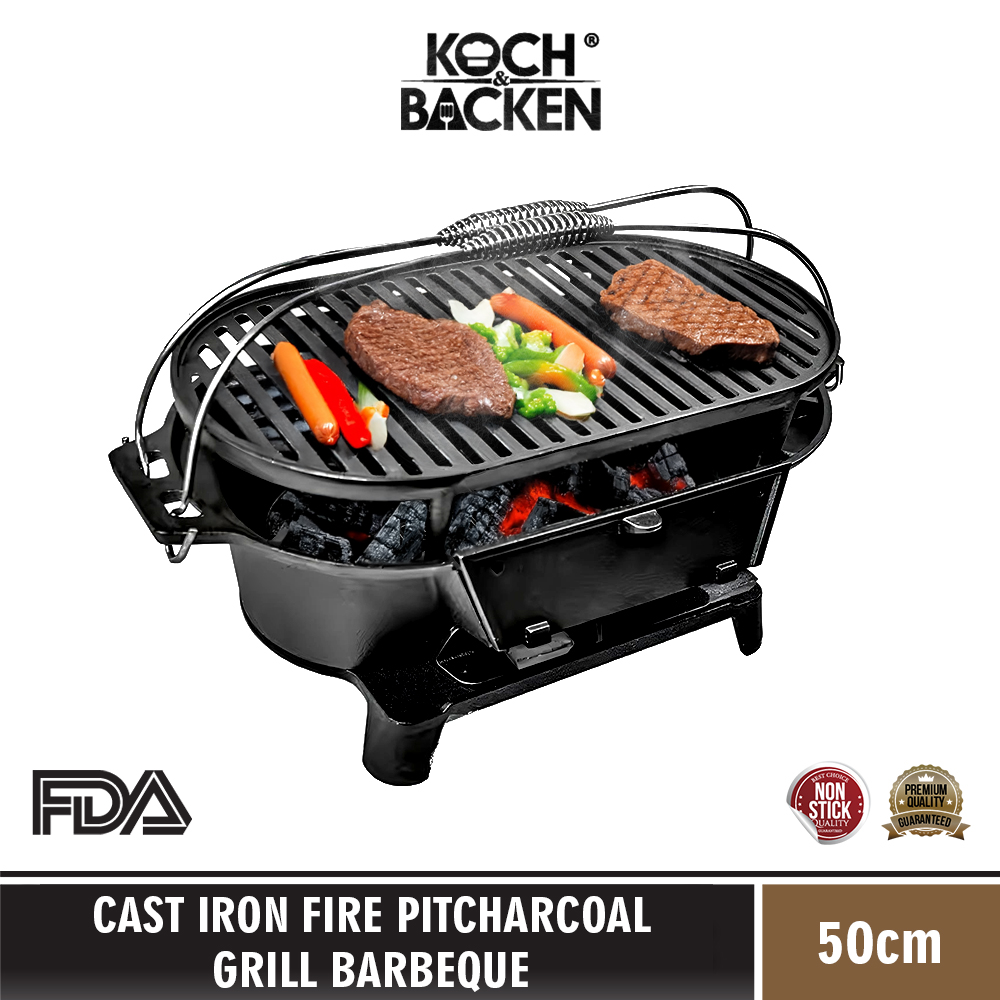 KOCH&BACKEN Cast Iron Fire Pitcharcoal Grill Barbeque 49,5cm - Panggangan Arang Besi Cor Murni Anti Lengket