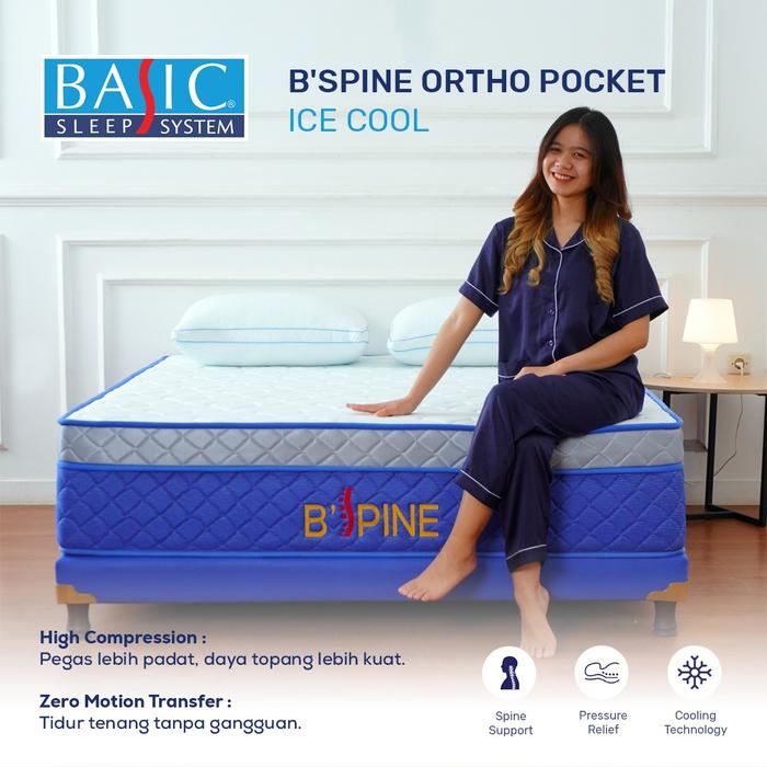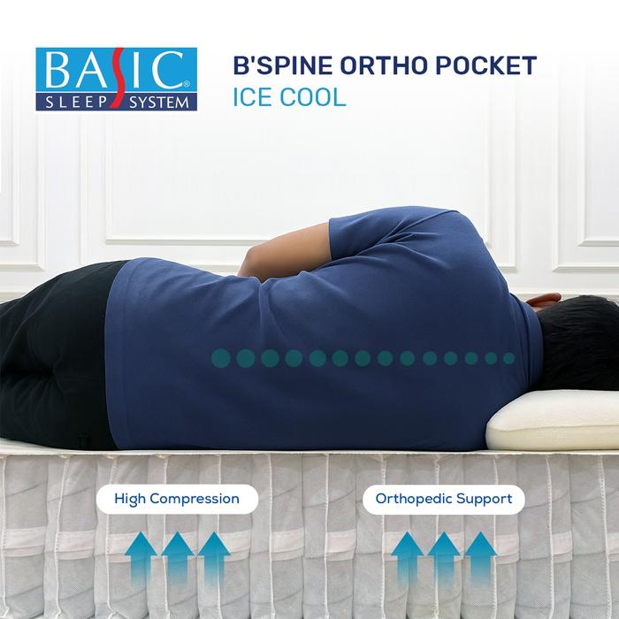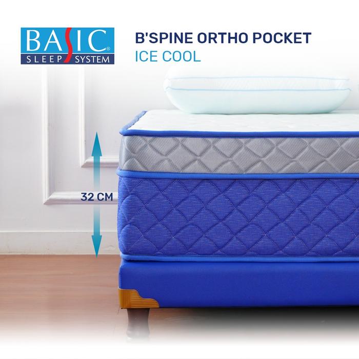 BASIC Springbed B'Spine Ortho Pocket Ice-Cool / High Compression Pocket Spring - Mattress Only - 100x200, 32cm