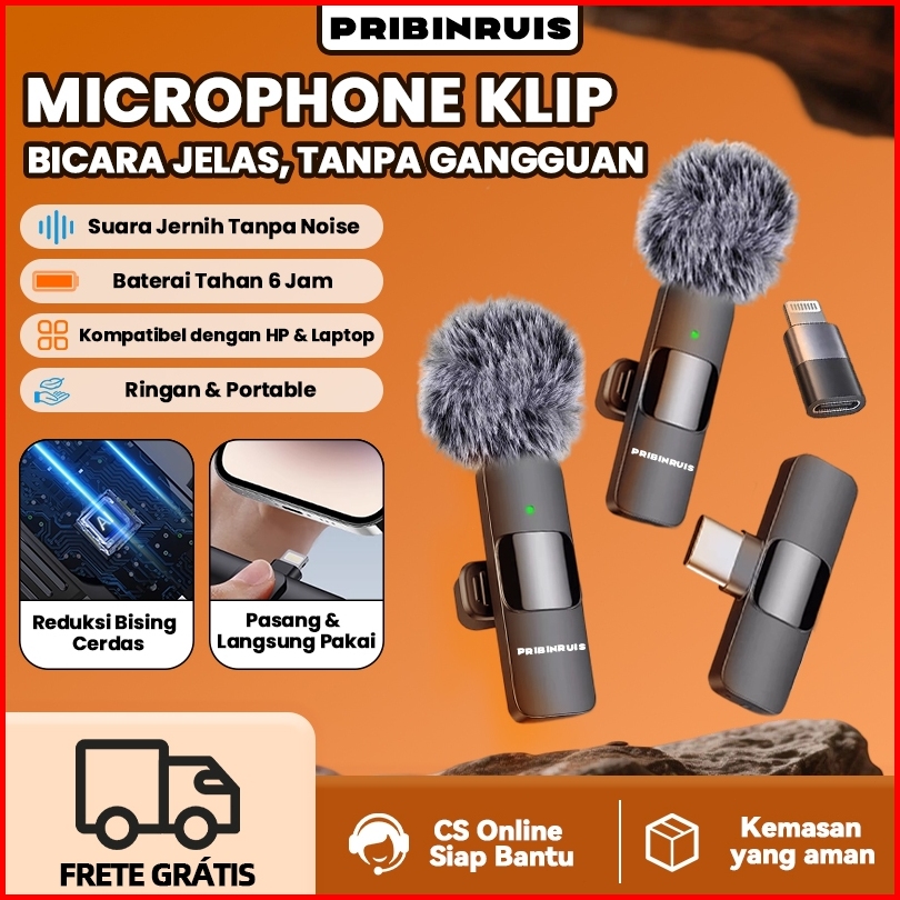 Pribinruis Mic Wireless Clip On Microphone Mikrofon Lavalier Hp Plug Play