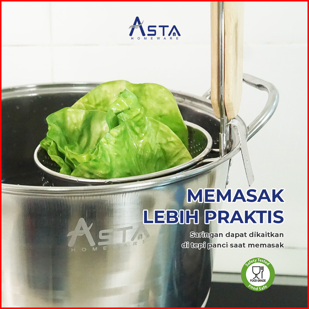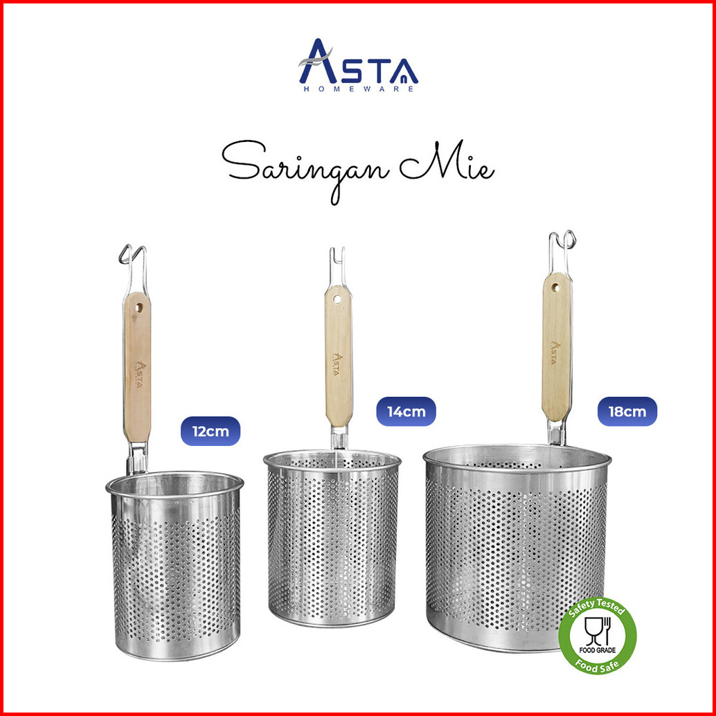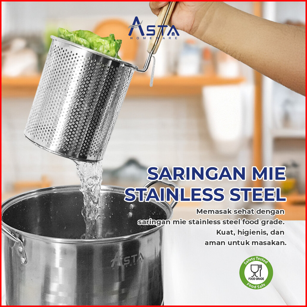 Asta Saringan Mie Ayam Stainless Bihun Sayuran Strainer Tahan Karat Gagang Kayu