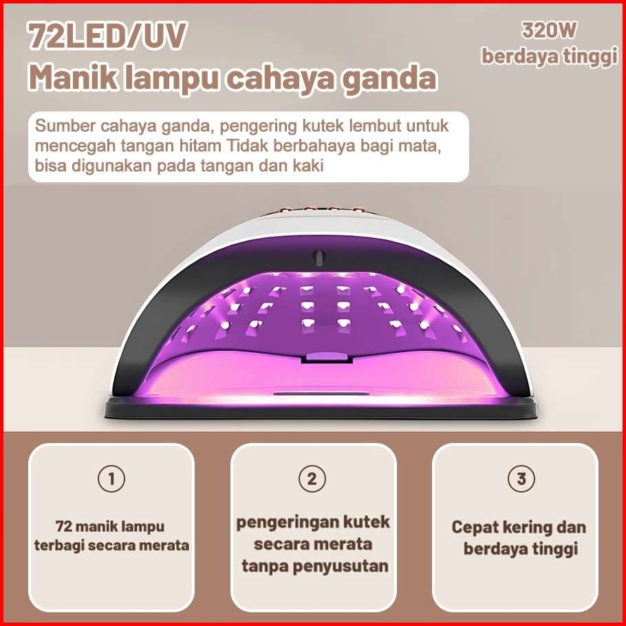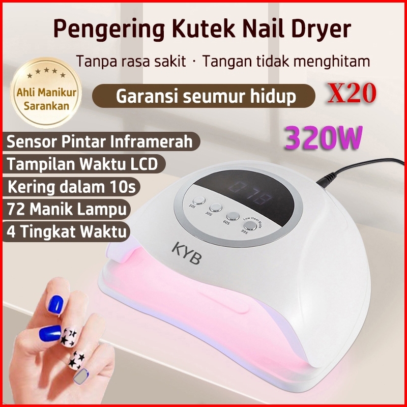 2025 Kyb X20 Uv Led Pengering Kutek Nail Dryer 320w 72 Led Portabel Mesin Fototerapi Cahaya Lembut