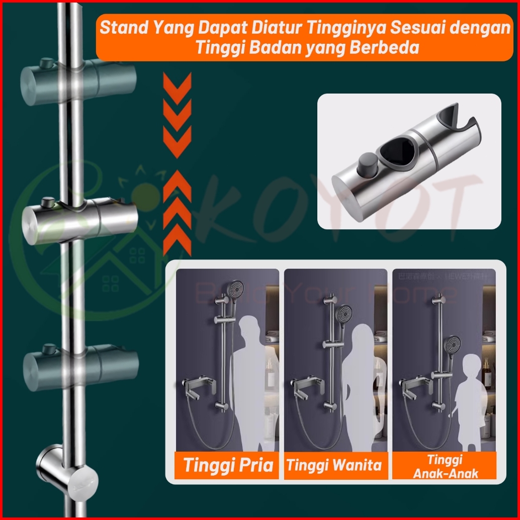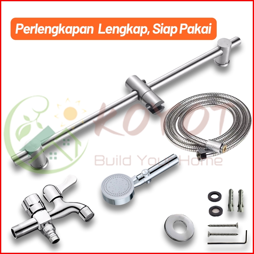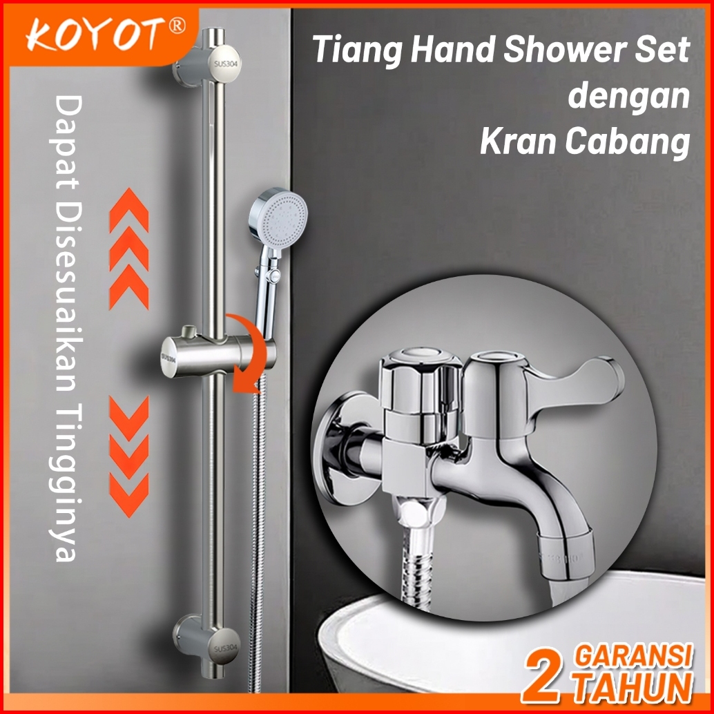 Koyot Tiang Hand Shower Set Dengan Kran Cabang Hand Shower Multifungsi 5 Mode Selang 1.5m