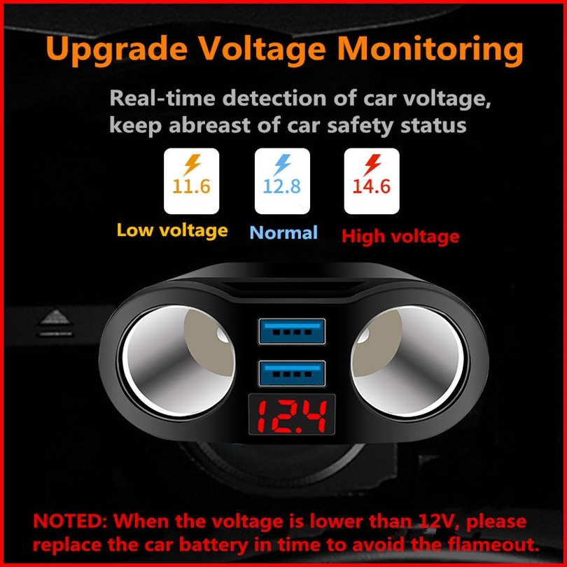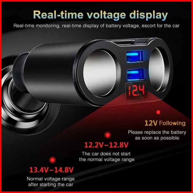 Mipanda 4 In 1 Car Charger Cas Mobil 3.1a Fast Charging Dengan Monitor Voltage 2 Lighter Socket