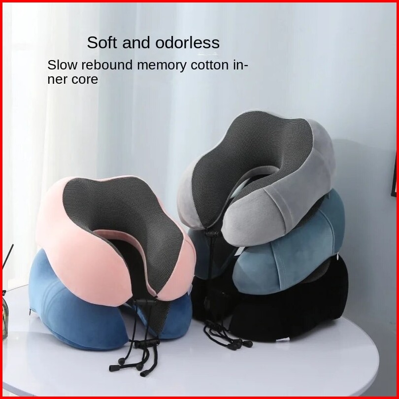 Autoshopee Bantal Leher U Shape U-shape Foldable Travel Neck Pillow Traveling Lembut Empuk Kantung Slot Smartphone Mobil