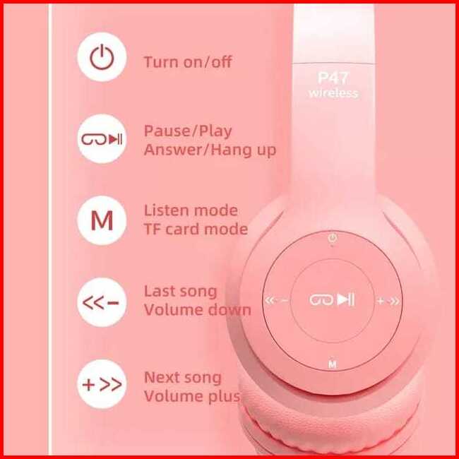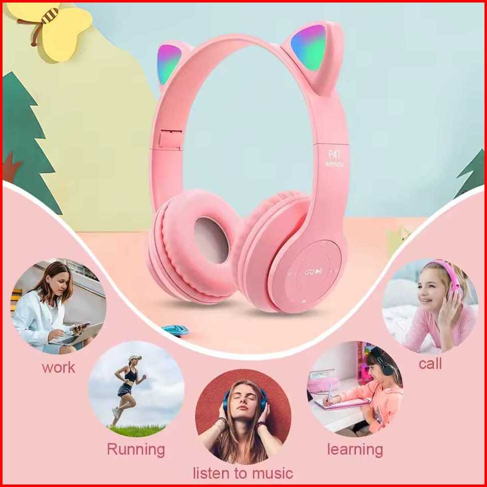 P47m Cute Cat Ear Bluetooth Headset With Led Wireless Headphone Children Girls Stereo Folding Sports