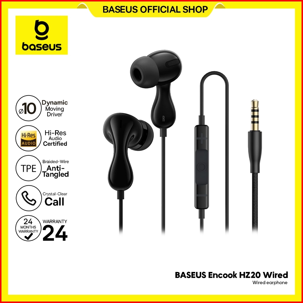 Baseus Encok Hz20 Wired Earphone Headset Kabel Audio Jack 3.5mm Bass Hi-res Sound