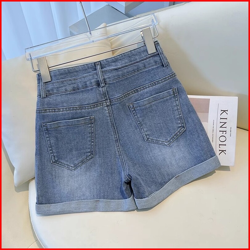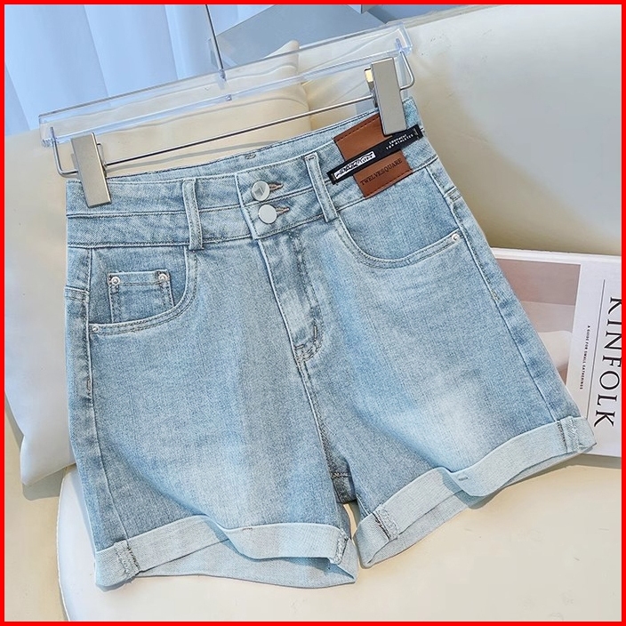 Kekinian.factory Hot Pants Jeans Wanita Celana Denim Korean Style Wanita Jumbo Warna Biru Short Pants Kekinian Bigsize C