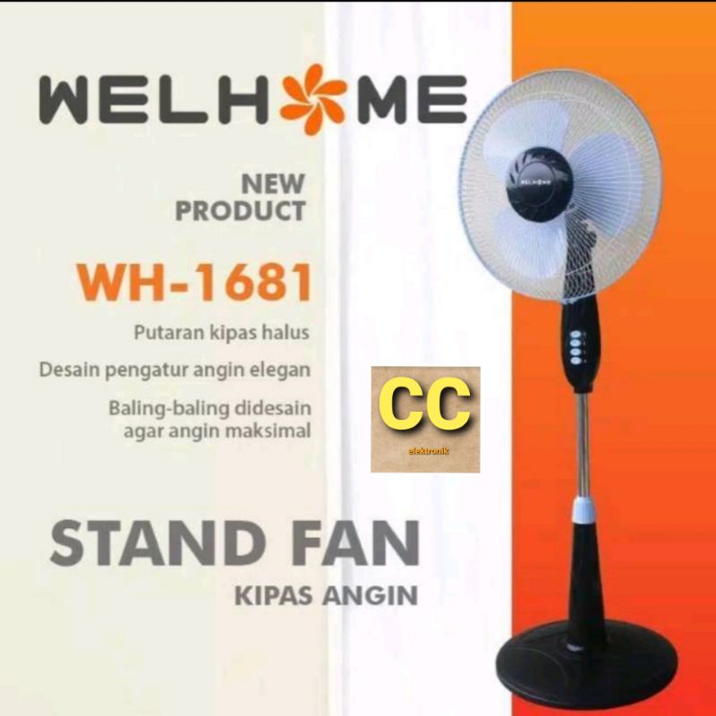TERLARIS WELHOME standfan 3 speed / kipas angin berdiri WELHOME 16inc Standfan kaki bulat KIPAS ANGIN BERDIRI