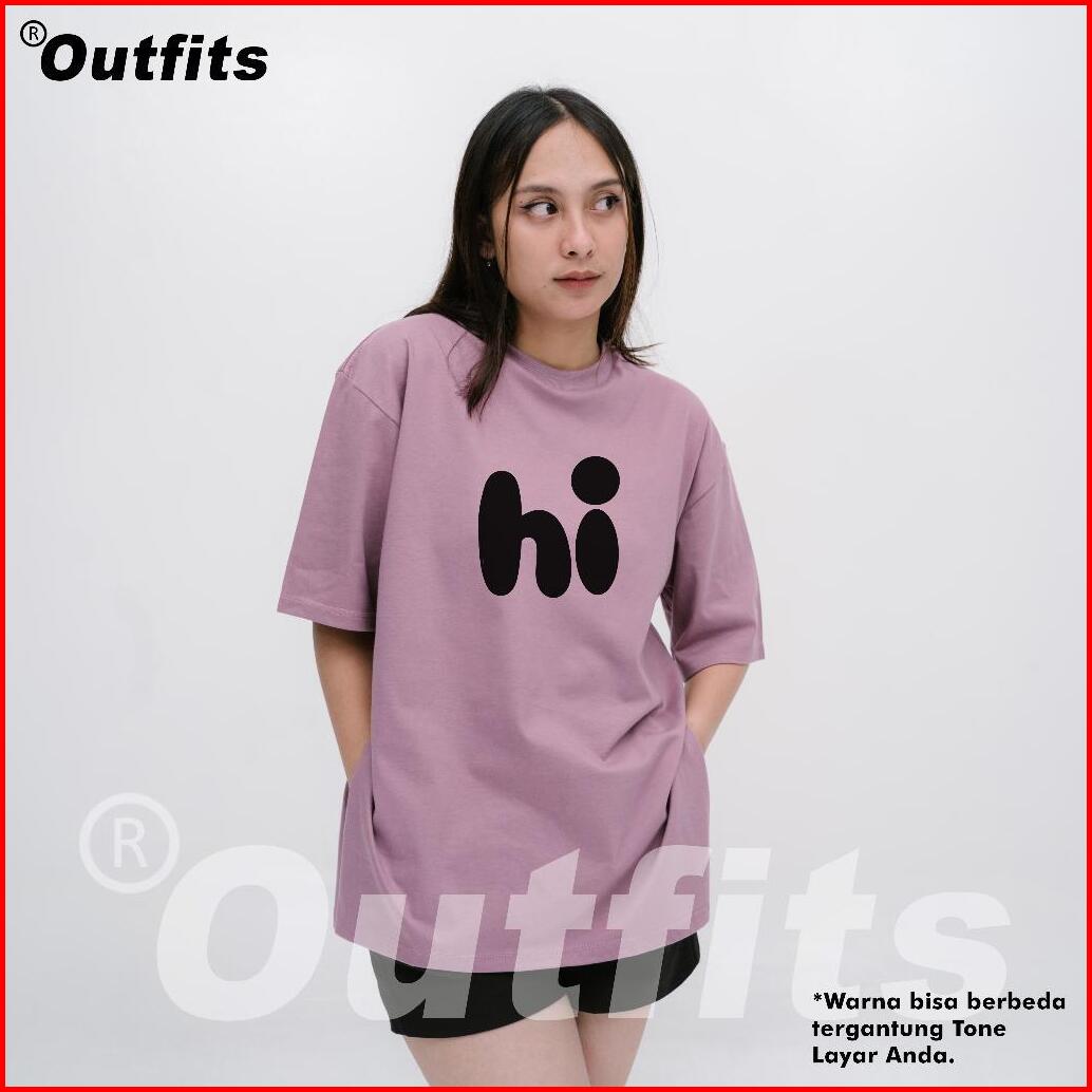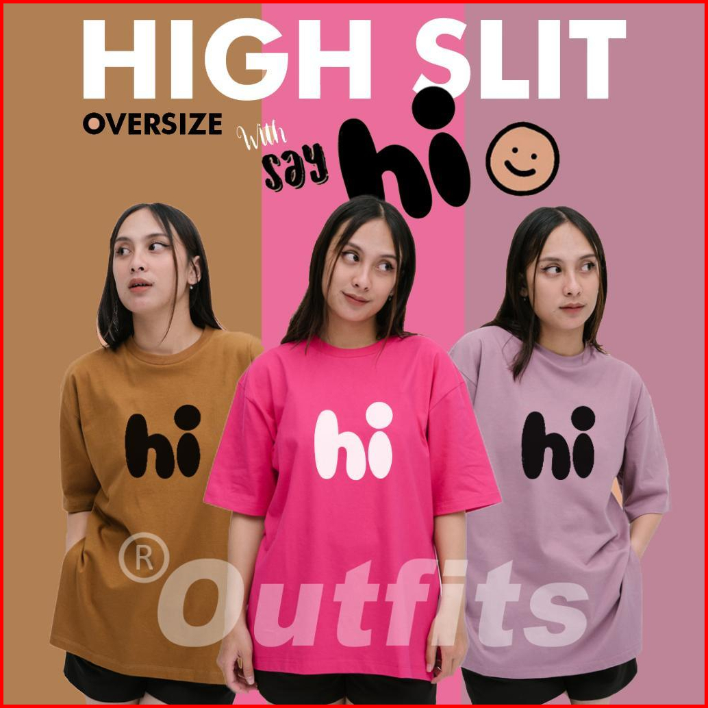 Ka0s T-shirt Oversize Atasan Wanita High Slit Belah Samping Lengan Pendek With Say Hi Ld Jumbo 122cm Bahan Cotton Combed