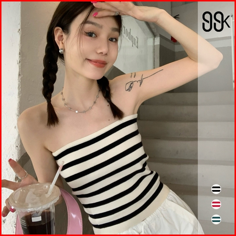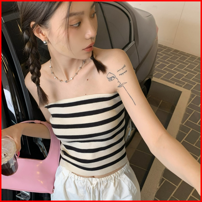 Knit Strapless Stripped Tube Top 2286