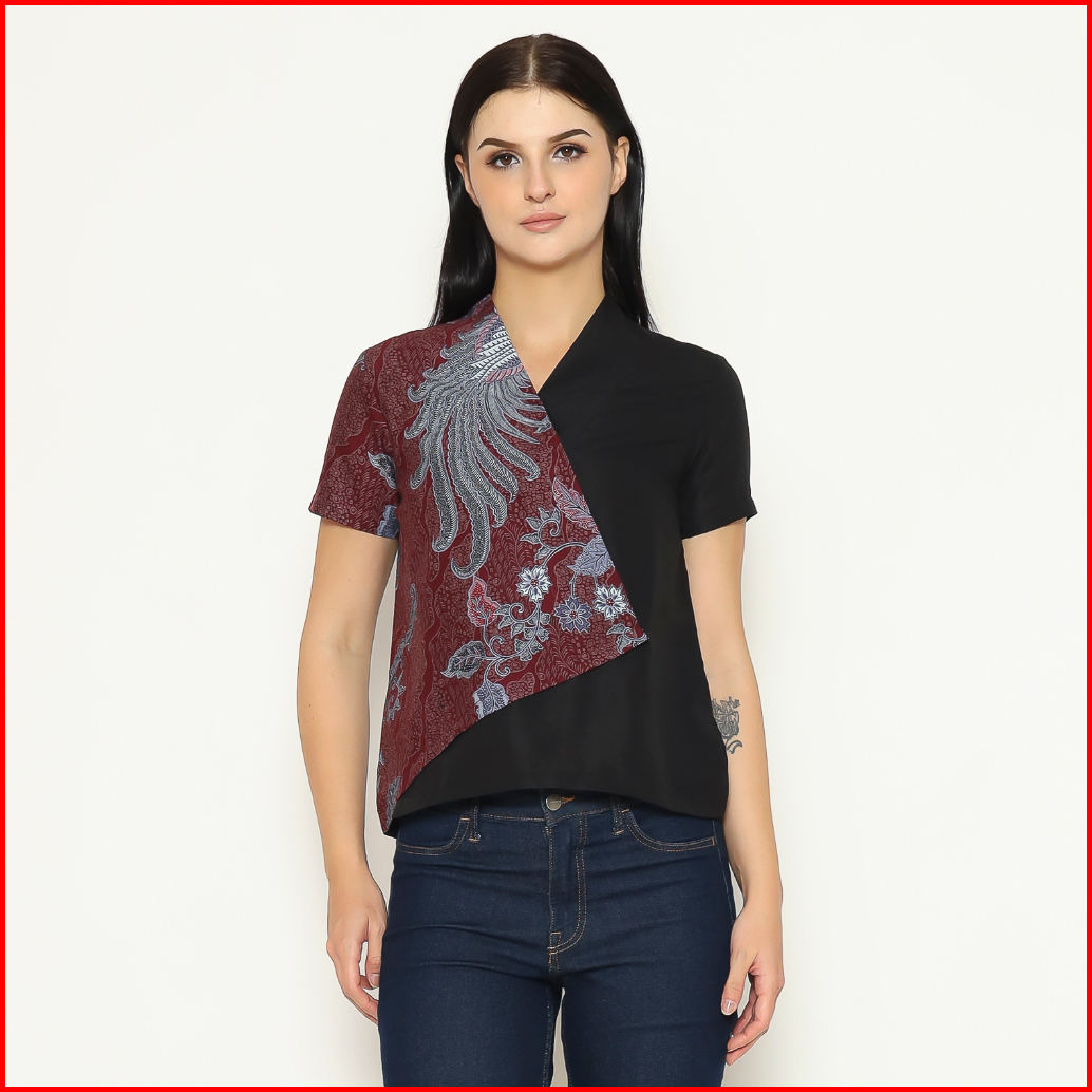 Blouse Batik Wanita - Atasan Batik - Bhatara Batik Leslie - Baju Batik Modern Lengan Pendek