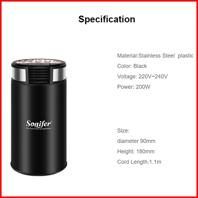 Sonifer Coffee Grinder Electric Penggiling Biji Kopi Kacang Bumbu Sf-3526
