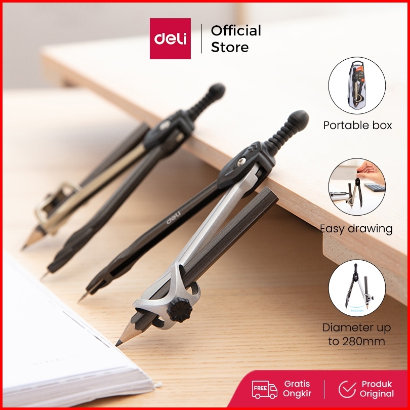 Deli Jangka Sekolah Dengan Pensil Nyaman Dipegang Mudah Dibawa Eg20402