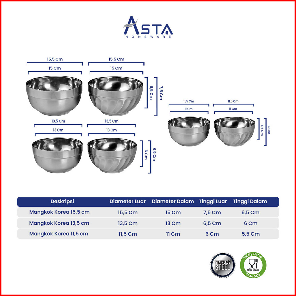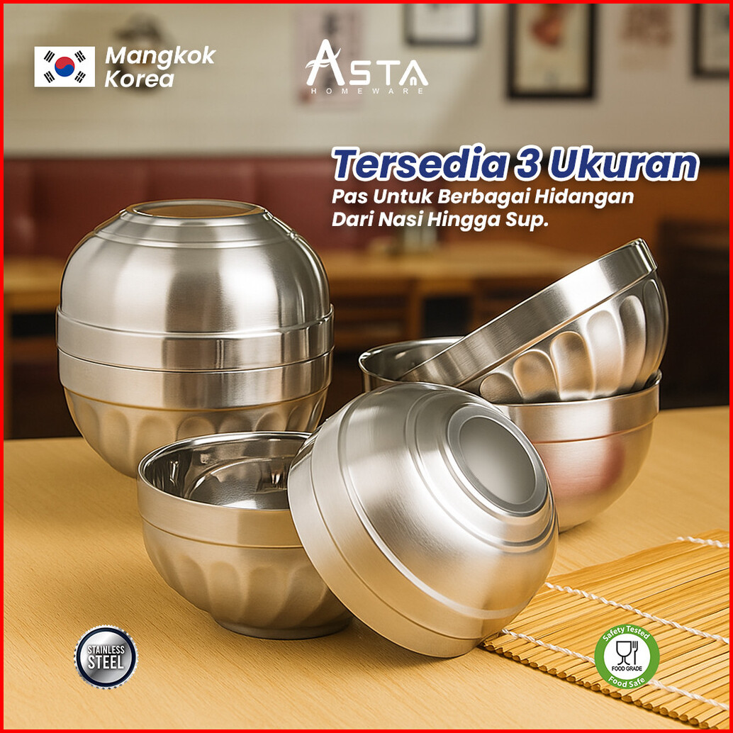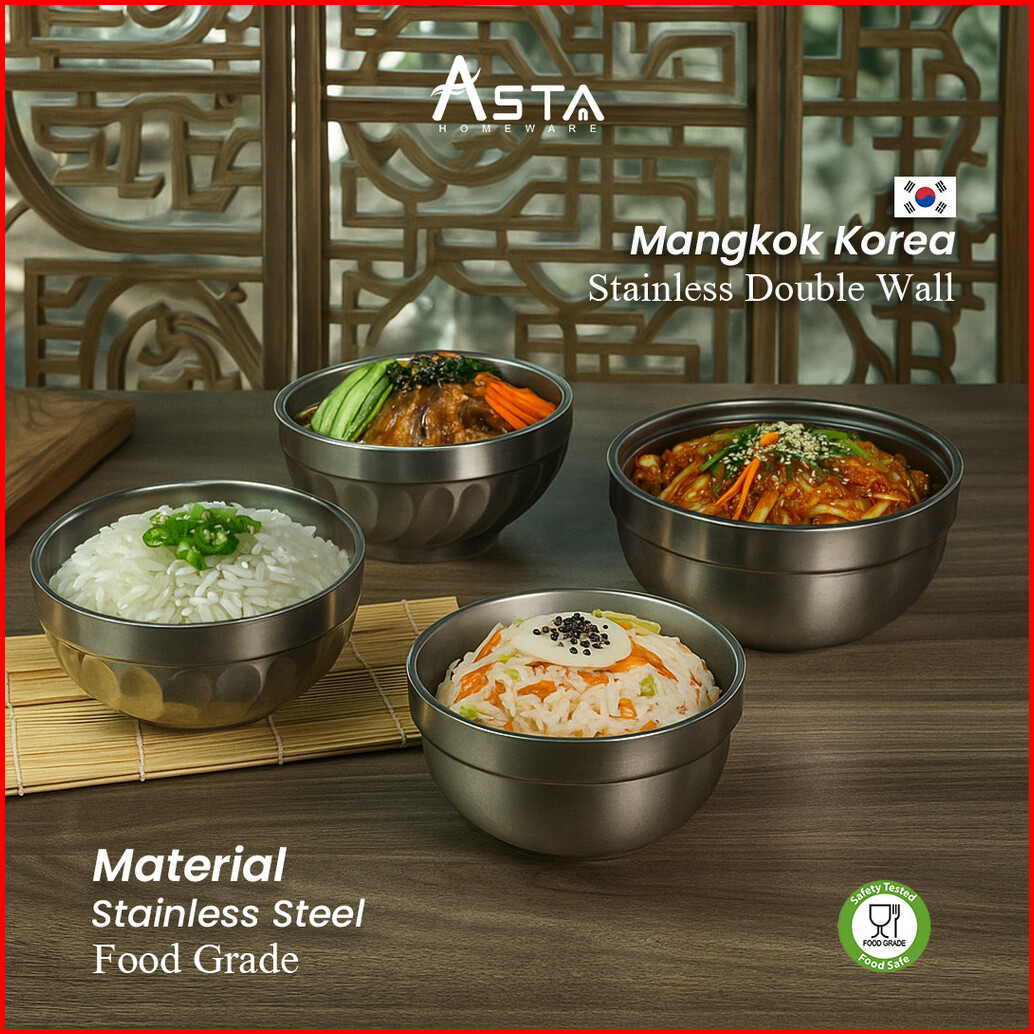 Asta Mangkok Nasi Korea Stainless Steel Double Layer Mangkok Sup Korean Bowl Tebal Anti Panas