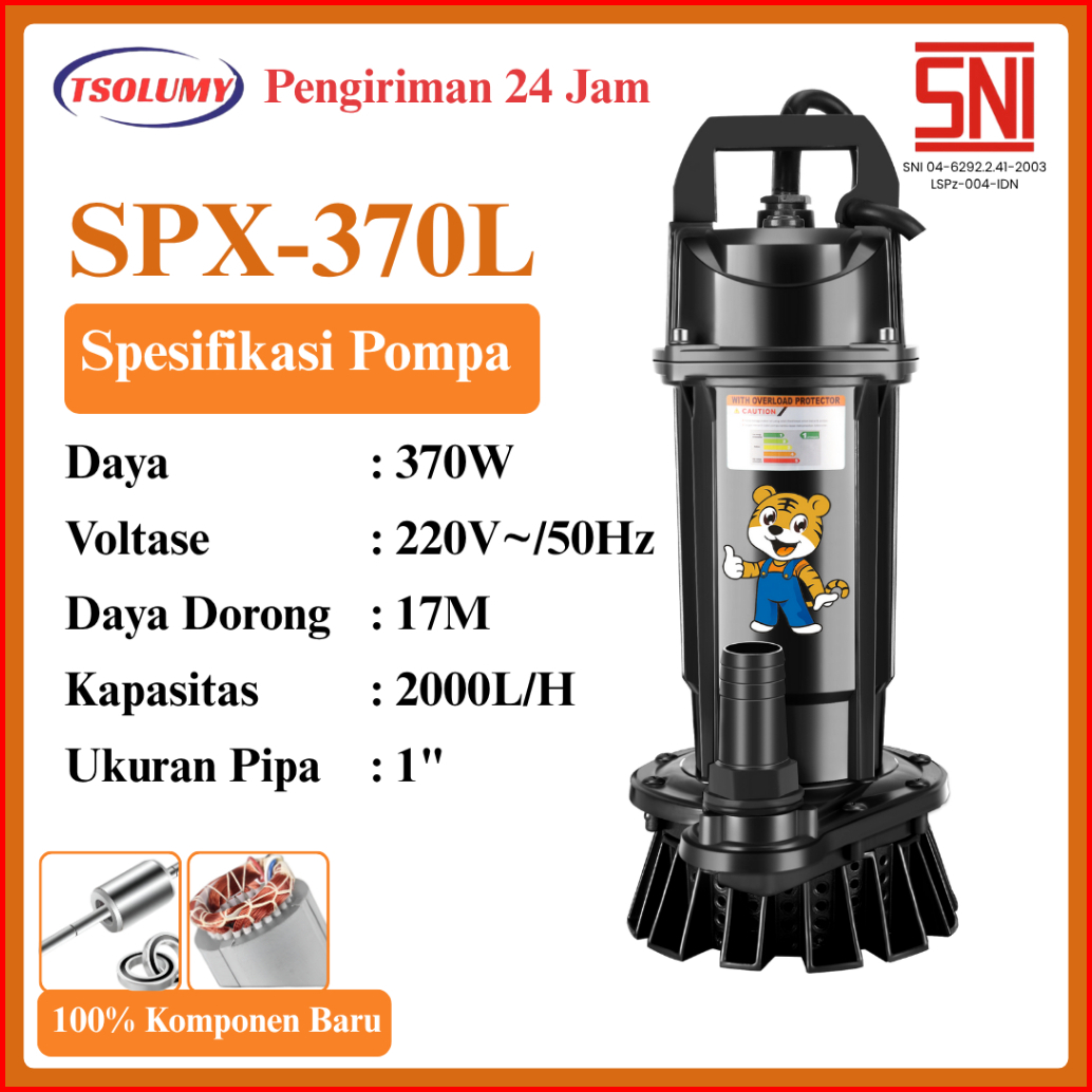 Tsolumy Pompa Celup Air Kotor 370w Kedalaman 7m Submrsible Pump 1inch Pompa Kolam Ikan Pompa Banjir