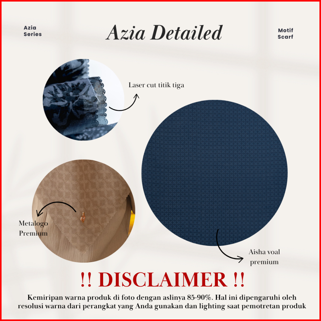 New Launch - Azia Series Jilbab Motif Monogram Kerudung Segi Empat Hijab Scarf Bahan Voal Laser Cut
