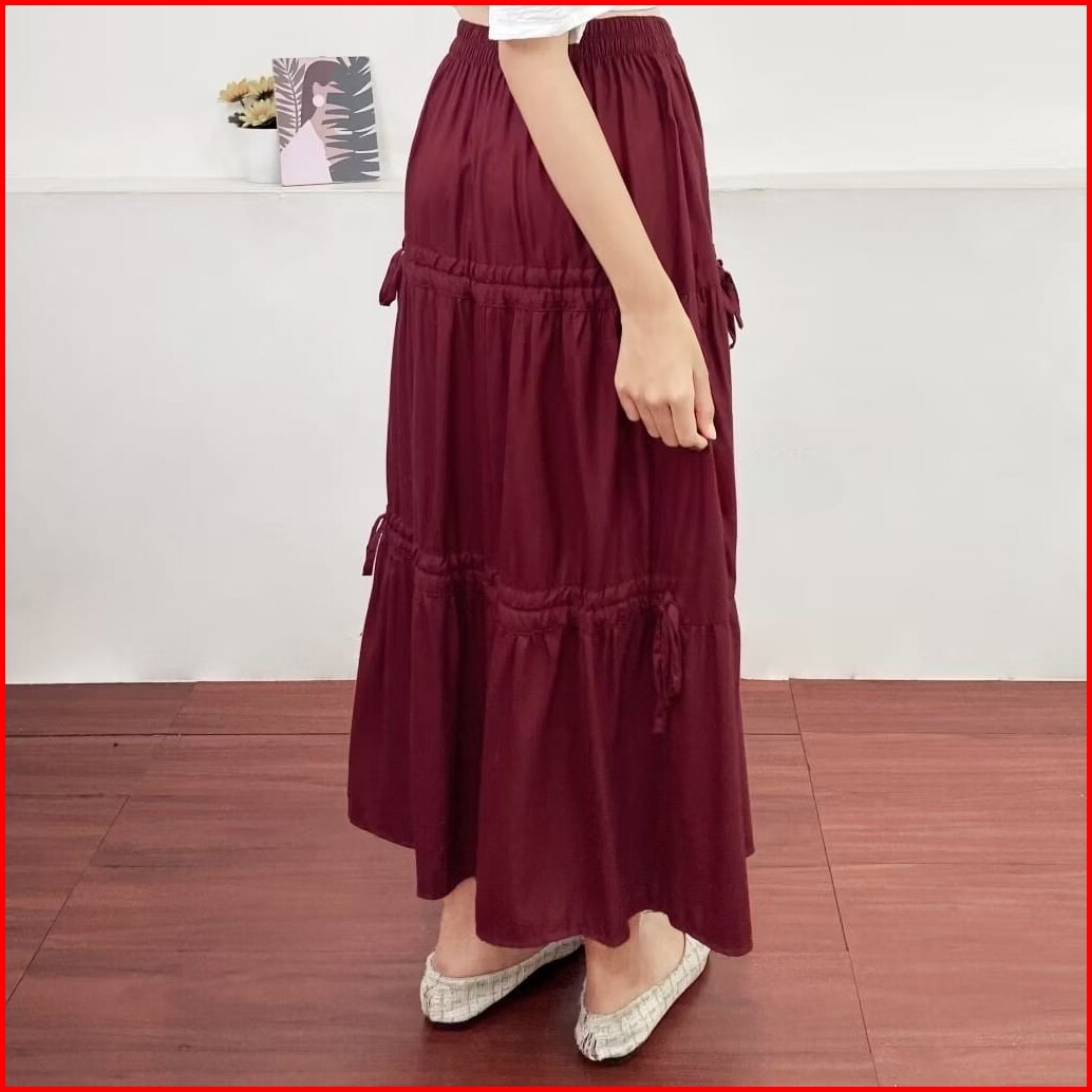 Vallina Outfit - Kawai Skirt Bawahan Cringkle Polos Apk Pita Premium Ootd Korean Style Casual Daily