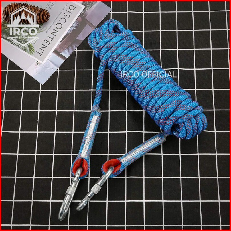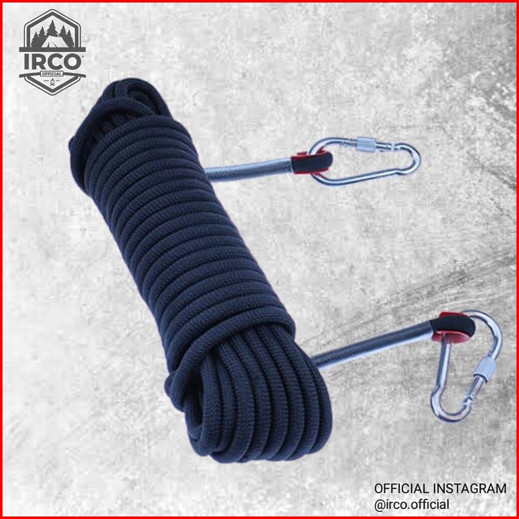 Irco Tali Karmantel Statis 10 M Tebal 10mm Free 2 Carabiner - Climbing Rope Panjang 10m Tahan 300kg