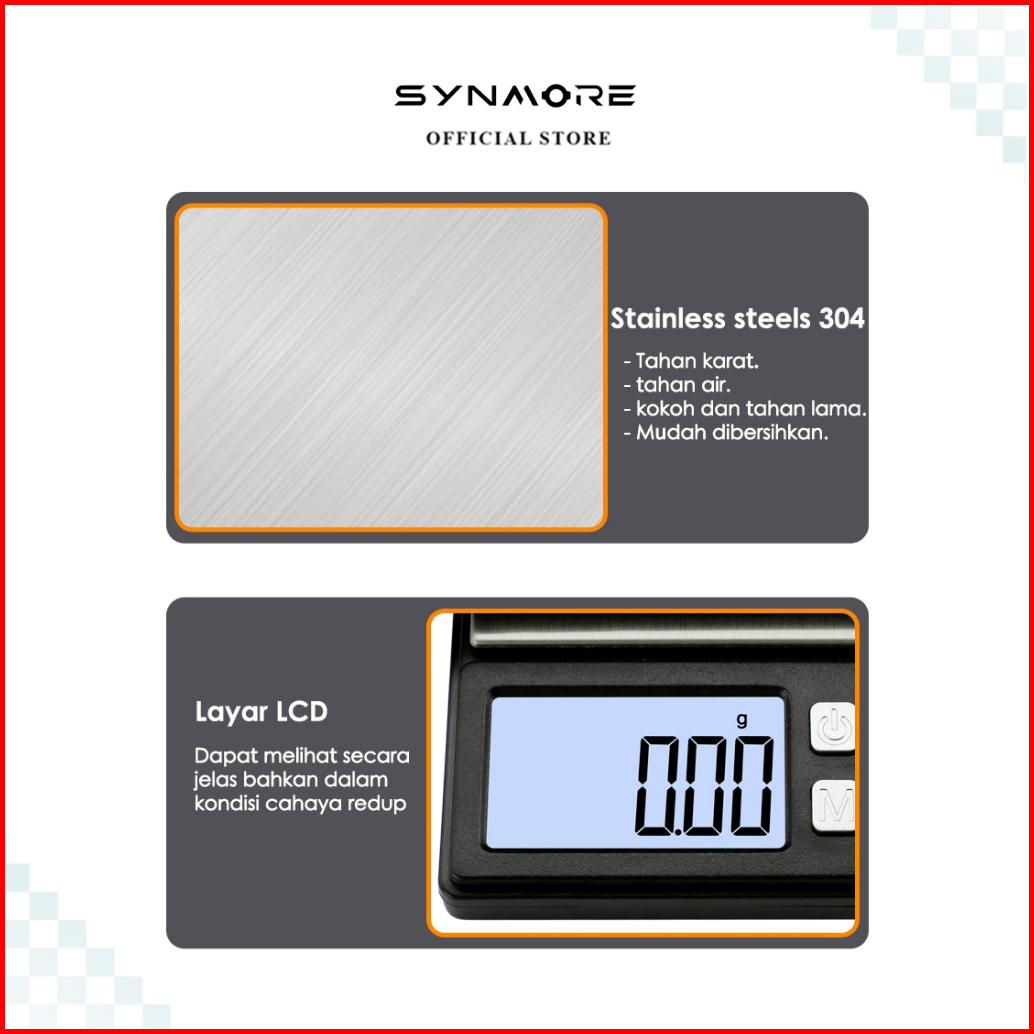 Synmore Timbangan 1000g Digital Silver Berlian Batu Akik Obat Pocket Scale 0 01g