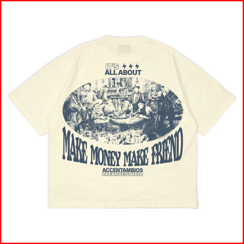Accentambios - Boxy Oversized Tshirt Make Money Make Friend Cream Unisex - Cotton Combed 20s