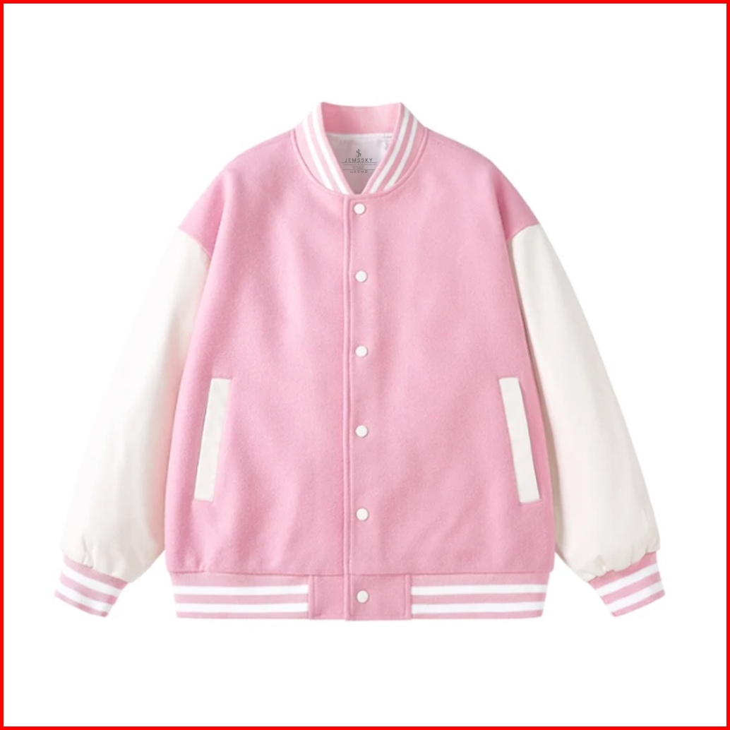 Jemssky Jaket Baseball Polos Pink Putih Distro Unisex