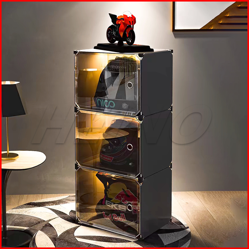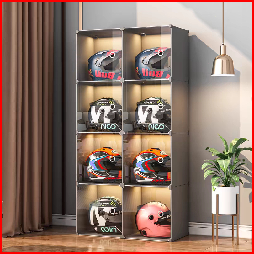 Heino Rak Helm Tertutup Tahan Debu Dan Serangga Lemari Pajangan Helm Rak Tas Lemari Tas