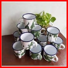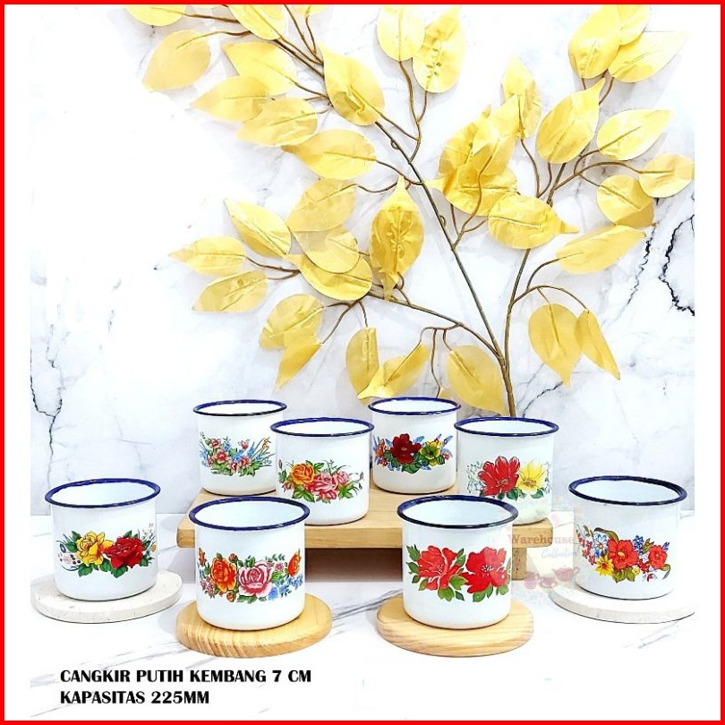 Cangkir Seng Kembang Cangkir Gelas Mug Enamel Seng Bunga Polos Lurik 7 Cm