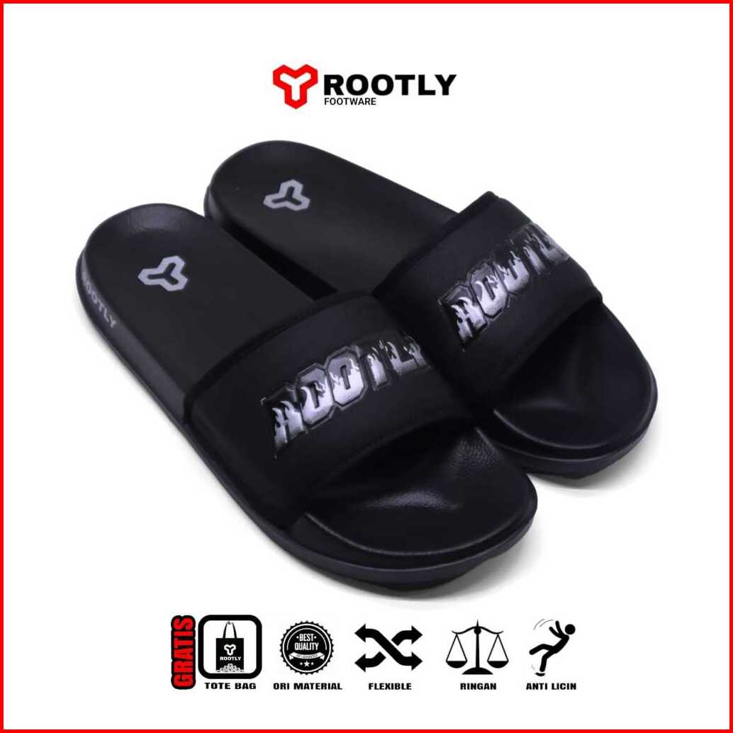 Rootly - Sandal Slide Pria Terbaru Velcro Cokelat Hits Kekinian